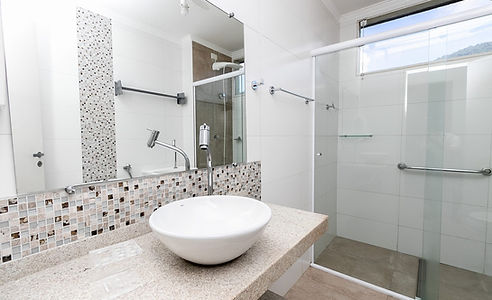 Amplo, bem iluminado e ventilado, box com barra de apoio e ducha Lorenzetti Acqua Duo - vaso com ducha higiênica, lavatório com bancada e espelho grande - tanque pequeno, 1 varal de parede e 1 portátil, rodo, vassoura e pá